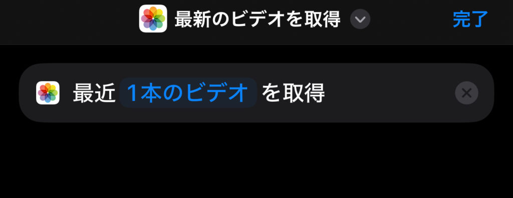 アクションの検索にビデオと入力し「最近一本のビデオ」を選択、一番最新のビデオを取得する